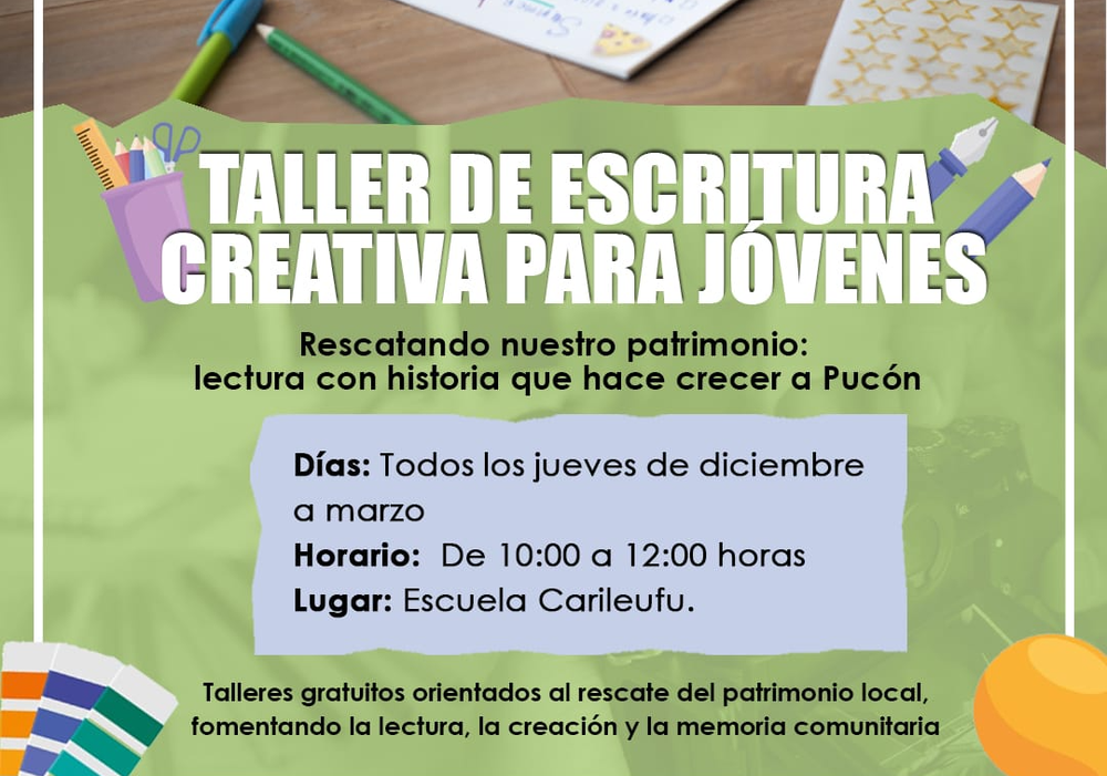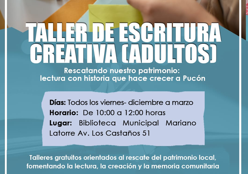 El Centro de Artes y Oficios Almendral te invita a compartir una jornada intensiva de Escritura Creativa junto a la narradora oral contemporánea, licenciada en filosofía y gestora cultural Paty Mix. El Sábado 17 de agosto, desde las 10.00 hrs. la escritora recorrerá técnicas de narración orientadas al rescate de los recuerdos, pasando por la ficción y la reconstrucción de la memoria personal. Especialmente pensado en quienes tienen cierta cercanía con los relatos y deseen adquirir nuevas herramientas. "Sin duda será una experiencia que nos invitará a revivir nuestras historias de vida, una invitación también al autoconocimiento", adelantó Paty Mix.